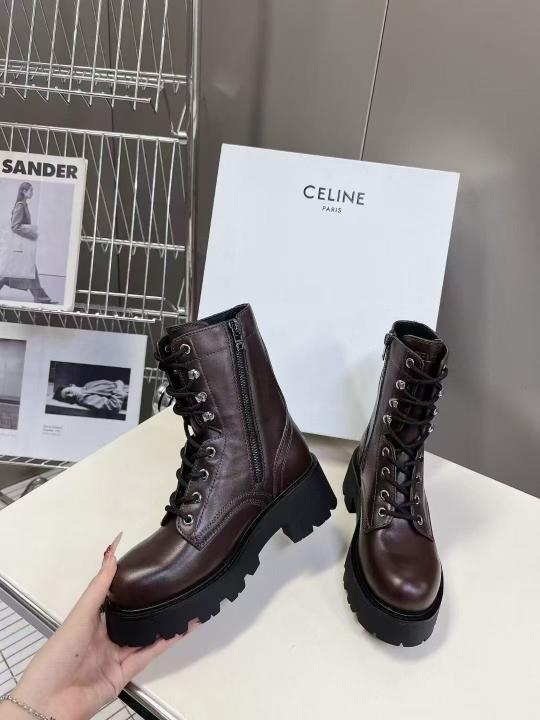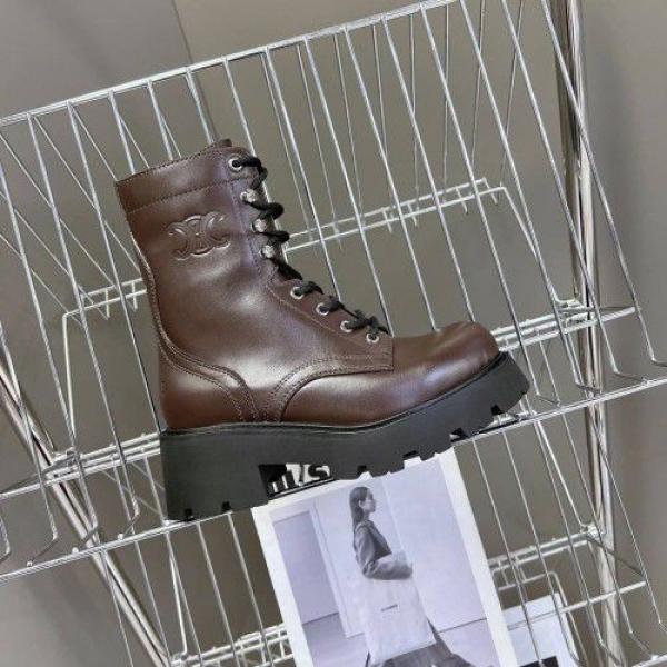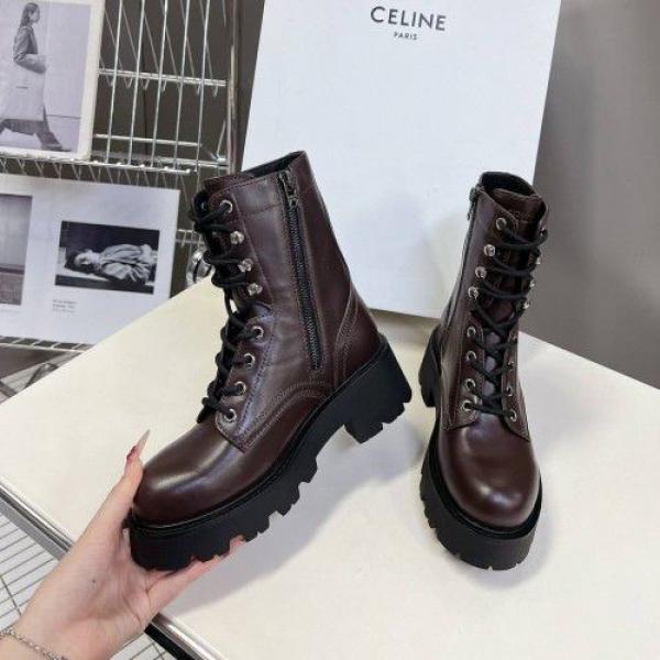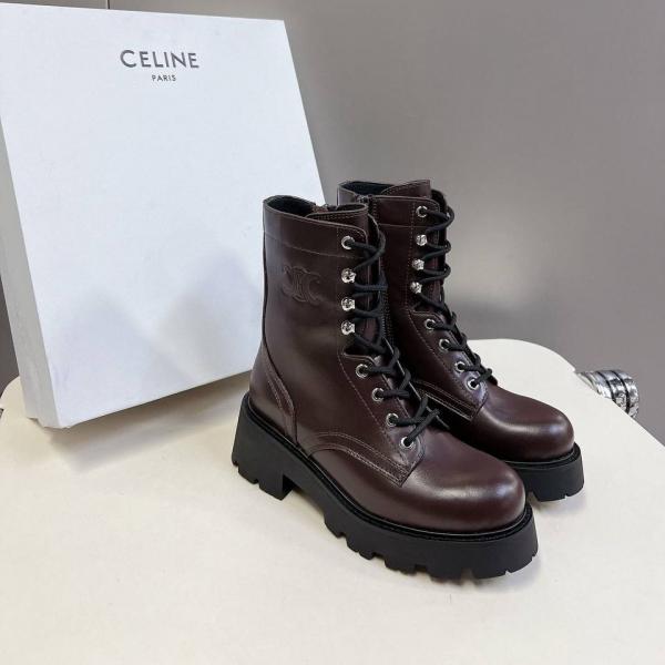 Home Women's Shoes Celinne Triomphe Rangers mid lace-up boot in calfskin leather.